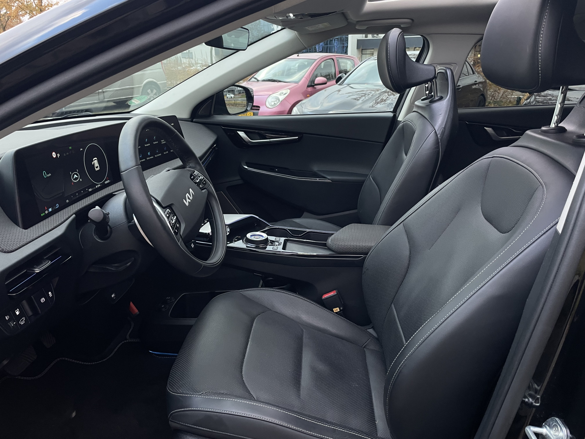 Niet alleen de techniek van deze elektrische Kia EV6 is vernieuwend. Ook het ontwerp onderscheidt zich duidelijk van de massa. De techniek van deze auto is radicaal anders dan u gewend bent. U rijdt zacht zoemend naar uw bestemming, de actieradius van de accu’s is ruimschoots voldoende voor de meeste dagelijkse ritten. De krachtige motor geeft deze Kia uitstekende prestaties. Even op het knopje drukken en de elektrisch bedienbare achterklep gaat open. Net zo gemakkelijk als het elektrisch bediende glazen panorama dak. Koude start? Niet met de verwarmbare voorstoelen! De verwarmde achterbank is een luxe extra, speciaal voor de passagiers. Natuurlijk behoren 20 inch lichtmetalen velgen, LED koplampen, warmtewerend glas, in delen neerklapbare achterbank, LED-achterlichten en verstelbare lendensteunen ook tot de uitrusting van deze complete auto.